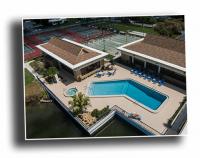 There are gamesand books for you to enjoy.. It has a large wrap-around screened/enclosed lanai, and is on a shaded corner lot with a lake view and a short walk to the club house and facilities.