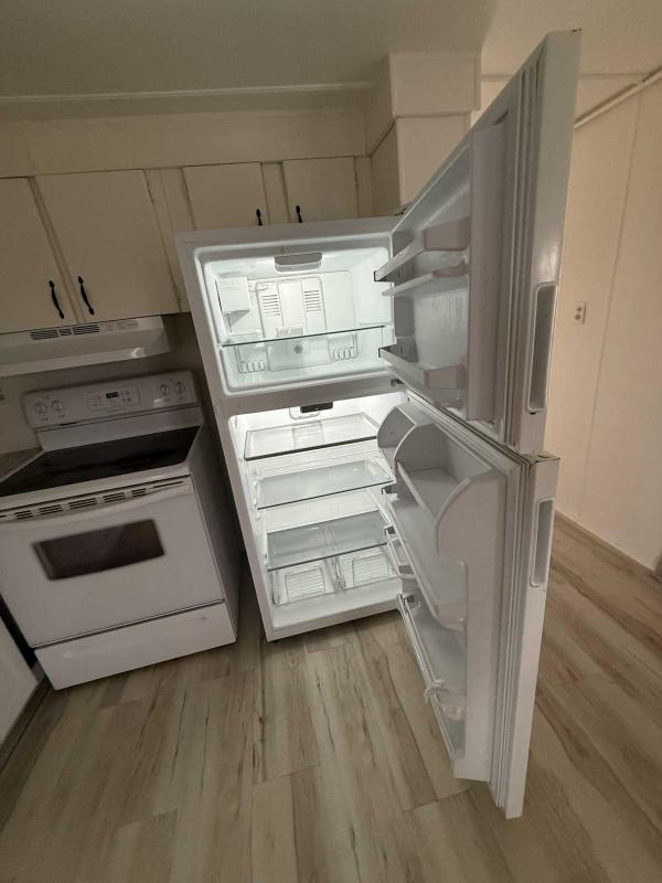 New kitchen bottom cabinets and faucet fixtures. New living room ceiling fan.