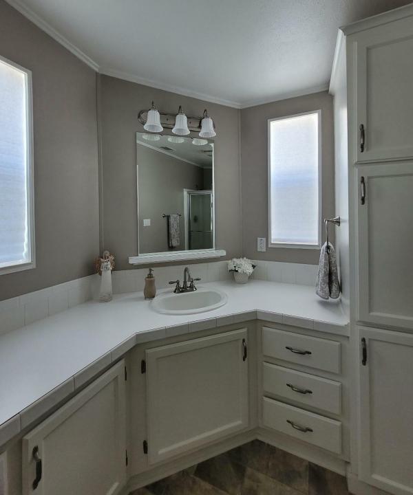 Definitely a rare find in mobile homeland! 2 Bed/2 Bath updated manufactured home in a 55+ lakefront community featuring1492 sf of living space, a private double deck that backs up to nature land so there are no neighbors behind you. Lots of privacy! Golf Cart and furnishings are included in asking price. Now $99,500, all offers considered!!!