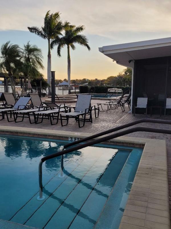 Pets allowed under 35 lbs, unless a service dog. Home is not in flood zone. HOA is optional for $20 a year, our community and lot rent is competively priced for this area at $859 monthly which includes water, sewer, grass mowing & trimming, trash disposal, and of course daily use of all clubhouse amenities: fitness room, library, community room, two pools, hot tub, barbecue area for friends & family, the beach area to have fun or just relax.