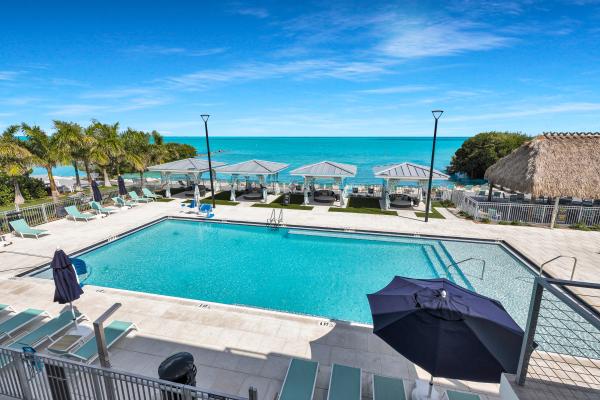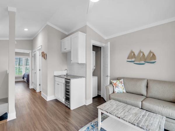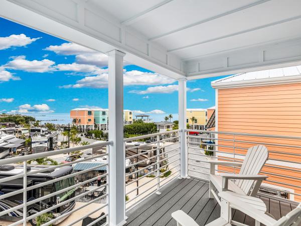 Enjoy the incredible views from your upstairs deck, accessible from the cozy lounge area. The home is furnished with a tropical style, creating a relaxed, island-inspired atmosphere, perfect for unwinding with a drink from your wet bar.