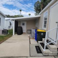 A well-kept 2 bedroom, 1 and 1/2 bath home, partially furnished. New kitchen done in 2024, new washer and dryer, stove and refrigerator added in 2022, a/c unit was replaced in 2018. The screened porch has new epoxy flooring for easy cleaning. Huge storage shed in rear of home. Assigned parking for car and golf cart in front of the home. Located within walking distance to the clubhouse, pool and mailboxes.