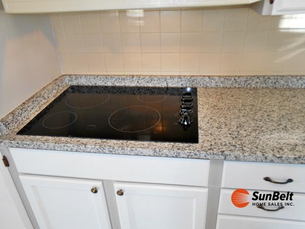 Two-bedroom two bath home with many new updates. Beautiful, updated kitchen with granite countertops, new refrigerator and dishwasher. New matching luxury vinyl plank throughout the entire home. Both bathrooms have new granite countertops, sinks and toilets. Enjoy the sunrise in the morning with a up of coffee in your lanai Freshly painted inside and out. A must see in person. Rolling Greens voted number 1 resort style home in Florida. Water, sewer, lawn, curbside trash pickup twice a week and access to all the amenities for $1,036 per month the first of the year.