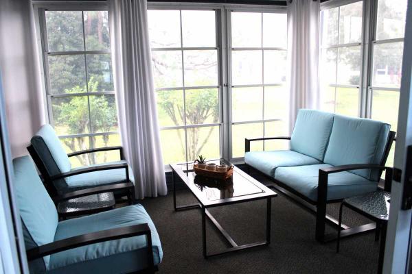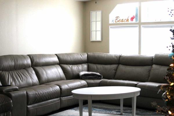 Spacious Living Room: Enjoy a large, comfortable living space furnished with a wraparound sectional couch and quality furniture.