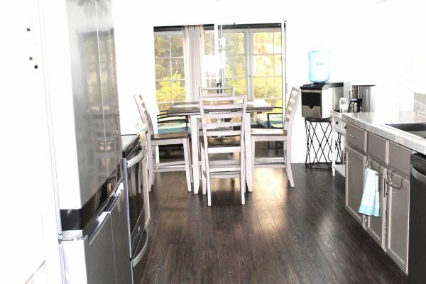 Stylish Kitchen: The pass-through kitchen boasts resurfaced countertops, brand-new stainless steel appliances, ample cupboard space, and a private desk area-ideal for work or creative pursuits.