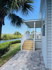 A Waterfront Welcome in a wonderful 55+ Community! You will be right at home on 99 North Harbor! This beautiful NEW 2-bedroom 2-bathroom home offers an energy efficient open floor plan and approx. 1228 sq. ft of living space, plus a kitchen that boasts of a beautiful center island kitchen w/ high-def formica/granite countertops, beautiful stainless-steel appliances, crown molding, luxury vinyl plank flooring, canned LED lighting, plenty of storage and more! The exterior offers all of our top features such as a covered waterside, raised deck that provides you with a fantastic breeze, a high impact wind package, a Galvalume metal roof and impact resistant vinyl windows! Since this home has direct waterfront there is a boat pier, ample shed space and parking!