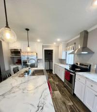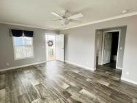 This stunning 2022 Clayton manufactured home spans 1,568 square feet of meticulously designed living space, featuring an open floor plan that seamlessly connects the living, dining, and den areas to create the perfect backdrop for both entertaining and relaxed everyday living. The gourmet kitchen is a chef's delight, boasting a generous center island with a breakfast bar, farmhouse sink, stainless steel appliances, sprawling countertops, and abundant cabinetry to satisfy all your culinary needs. Retreat to the spacious primary bedroom, complete with a walk-in closet and a luxurious en suite that offers a walk-in shower and ample linen storage, while two generous guest rooms and a beautifully appointed tub-shower combo bath provide comfort for family and friends. Throughout the home, you'll appreciate the elegant wood grain vinyl plank flooring, custom window treatments, and thoughtfully selected lighting fixtures that enhance every room. Step outside to enjoy the serene covered front porch, ideal for savoring a tropical breeze or hosting intimate gatherings, and take advantage of the oversized 12' x 16' attached storage shed-perfect for stowing seasonal decorations, bicycles, or pool toys.