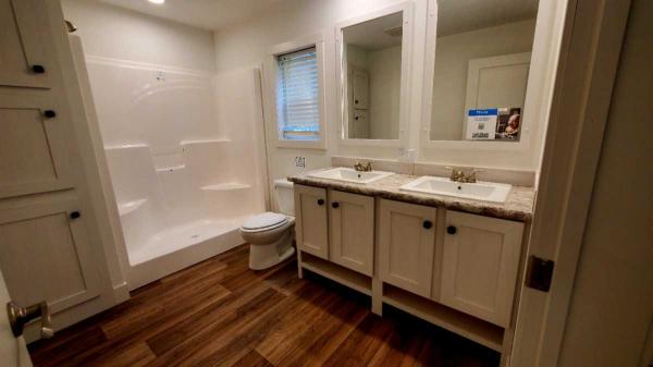 Stunning Double-Wide home now here at Country View soon. This eBuilt home has 8' flat ceilings throughout, DuraCraft soft-close cabinets, brand-new stainless steel Samsung Smart appliances, and elongated toilets. This home comes with a 40 Gallon Hybrid Water Heater with a Heat Pump, a high-efficiency gas Furnace with an Ecobee smart thermostat, and a brand-new shed, covered deck, and steps.