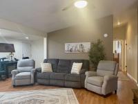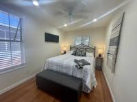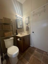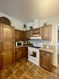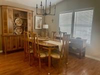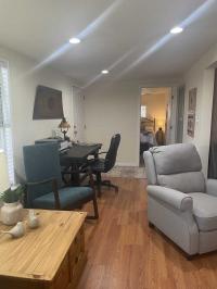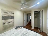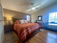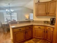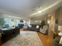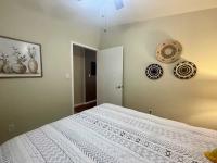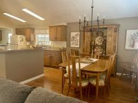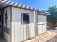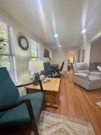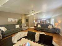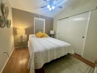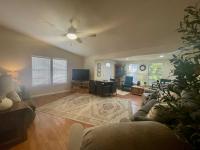 Motivated sellers will consider reasonable offers! Everything is here. Move in ready. Updates throughout. A large site built extension constructed in 2021 adds approximately 504 sq. ft. to your 1,344 living area, for a total of approximately 1,848 sq. ft. This lovingly maintained, quality Palm Harbor ground set home is full of quality features, furniture and furnishings, including a circa 1950s contemporary pecan and butternut Tomlinson SOPHISTICATE dining room set. You will find soft/close, upgraded cabinetry in the spacious, fully equipped, all electric kitchen with tile-look Congoleum flooring. Open the cabinets and find plates, silverware, glassware, pots, and pans, and small appliances. The large front living room is tastefully decorated with plenty of seating for all your relatives and friends. The primary bedroom with a king size bed offers a large walk-in closet, a ceiling fan and two windows for natural light. The primary bath, boasts a double sink vanity, high-rise toilet, and full-size step in shower. Two guest bedrooms with closets, ceiling, fans, and windows will welcome your guests with privacy and comfort. The laundry room has extra storage cabinets and a brand new washing machine. A beautiful rear private perimeter lot has a citrus tree, privacy panels, cement patio, a barbecue, and could be fenced in for your furry friend. The shed has been expanded to hold a farm door golf cart garage, and separate storage shed. A 1993 Yamaha golf cart with new batteries and tires will be included. This home has everything you have been looking for. Do not miss out. It is beautiful inside and out.
