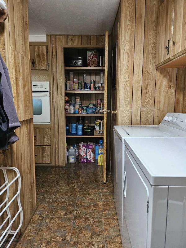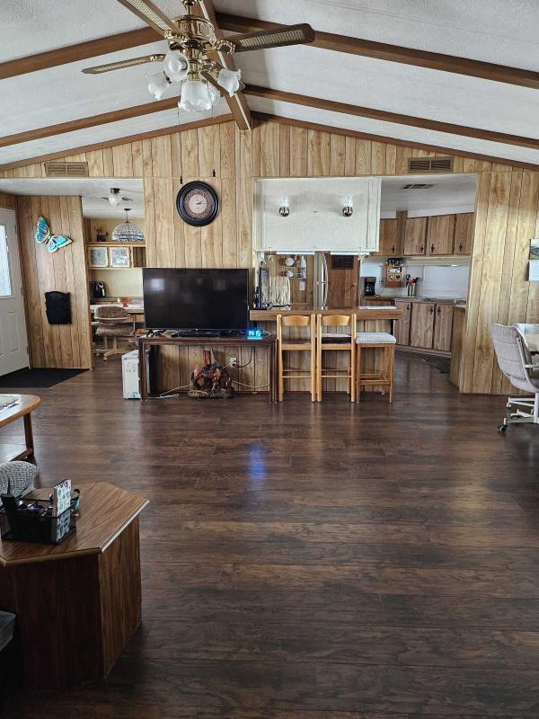 Spacious ground set 1982 Moduline Ambassador 24 x 64 3 bedroom 2 bath located in a gated, pet friendly 55 plus park. Split bedroom floor, large living area with vaulted ceilings and built-in book case. Kitchen area has cabinets galore and large counter area, a pantry closet, breakfast bar and a drop in range with built in Oven. Master in rear of home is large enough for a king size bed easily. Large closets in each bedroom. A 12 x 16 attached workshop with work bench, electric, shelving and freezer. Washer and Dryer included. Awnings on both the carport and patio.