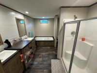 Brokered by YES Communities. Step into comfort and style with this beautiful 3-bedroom, 2-bath double wide home, just one year old! The spacious open-concept kitchen and living room feature a large island, perfect for entertaining or gatherings. The primary suite offers a luxurious bathroom with a separate shower and a relaxing soaking tub. Modern finishes and thoughtful design make this home feel both cozy and contemporary. Enjoy the peace of mind that comes with a newer home and all the convenience it brings. Schedule your tour today and make this gem yours! Call or text Dana at