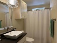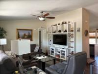 Quality adult living awaits the buyer of this well-maintained 2000 Palm Harbor 28x48 manufactured home, offering approximately 1,344 sq. ft. of comfortable living space with 3 bedrooms and 2 bathrooms. Situated on a low-maintenance corner lot with sunset views and easy access to the Rillito River Walk, this home features vaulted ceilings, textured interior walls, laminate and tile flooring, and a renovated center island kitchen with electric appliances and a separate dining area. The layout includes a spacious front living area with an accent wall, two front bedrooms with a full bath, and a private primary suite at the back with a custom walk-in shower. A back entrance utility room comes equipped with a washer and dryer, and the home's open floor plan offers an easy, natural flow throughout. Exterior highlights include a ramped front deck with railing, a railed and gated back deck, covered parking, two storage sheds, central A/C, gas heating and water heater-plus all appliances are included. Shown by appointment-call today to schedule your viewing!