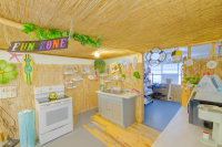 This UNIQUE and MASSIVE 1,644-square-foot HANDYMAN SPECIAL is truly ONE-OF-A-KIND. Currently decorated in a "TIKI HUT" theme, this home delivers a PERSONALITY and CHARM that MUST BE SEEN to be believed. BAMBOO finishes on the CEILINGS and WALLS, along with a CUSTOM-MADE BAMBOO entry door, highlight the OVERSIZED PANTRY area that can easily serve as an additional BEDROOM if desired. Beneath the bamboo, FINISHED DRYWALL makes it simple to REIMAGINE the space-or continue the DISTINCT TROPICAL THEME that sets this home apart.