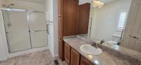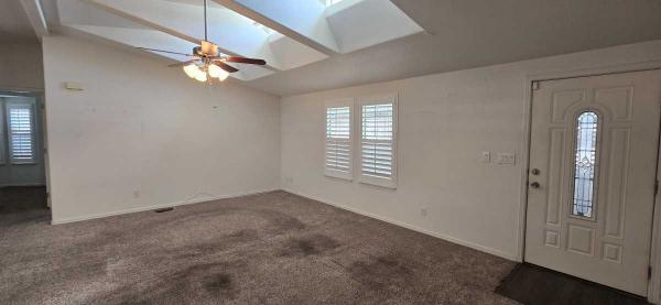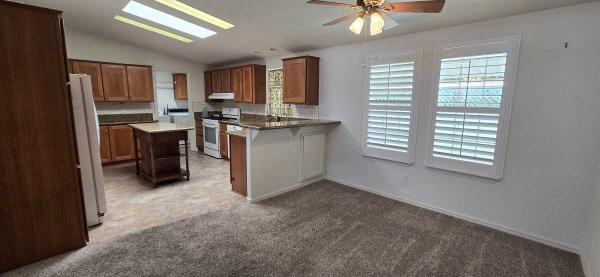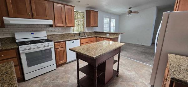 This is a 3 bedroom, 2 bath split-wing home is located next to pool/pool clubhouse and features dual-pane windows, vaulted ceilings, skylights and plantation shutters. Kitchen has island, granite countertops and includes range, refrigerator, dishwasher, stainless sink, lots of cabinets and is open to dining/living. Laundry room has both washer and dryer.