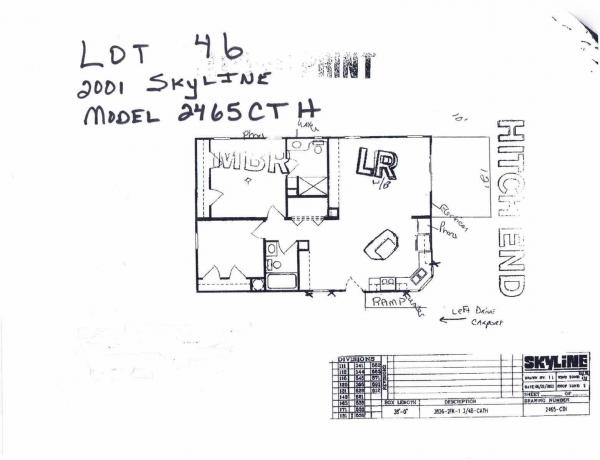 JUST LISTED!  Beautiful - 2001 Skyline Model 2465CTH - Approximately 1,000 sq. ft. with many extras.  This is a two-bedroom, two-bathroom home.  It has a large 10' X 12' sunroom on the front with an open deck.  Handicap ramp.    Flooring is wood-look vinyl plank throughout.   Large Master Bedroom and Master Bath with Walk-In Shower.   Roof - Installed June 2025. A/C Unit is Rheem installed in 2018.   All new appliances - April 2025 - refrigerator, stove and dishwasher.   Complete Interior painted 2025. New tie-down straps 2025.  All new outside shutters.  Termite/Pest control paid through May 2026 and is assumable.  Wind/Hail paid through April 2026 and is transferrable..   This home is move-in ready, and will be left partially furnished. Washer and dryer negotiable.