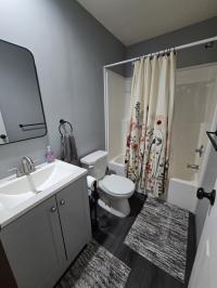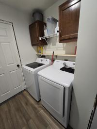 Sheetrocked, freshly painted, and with new floor coverings throughout, this open concept 2016 16x76 3 bedroom 2 bathroom Skyline manufactured home has been well taken care of AND updated! The kitchen is large, includes a refrigerator, dishwasher, microwave, pantry, breakfast bar, and a window over the sink. The primary bedroom is spacious and has an attached bathroom. There's white 6 panel doors, durable wood plantation blinds, a lighted ceiling fan, and a new central air unit. The laundry room is separate, has overhead cabinets and shelving and the washer and dryer are included also! It's located near a tornado shelter, has a matching shed, a 2 car driveway, and a walking path behind! Pets are welcome also!