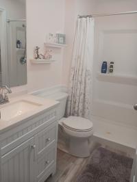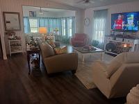 This home is tastefully decorated and sold partially furnished (most furnishing will stay). It has been meticulously maintained by it's previous owners. It has a new roof (2021), new laminate flooring throughout (2020), and a new air conditioner (2020). This unit has a unique separate powder room and linen area off the guest bathroom. Kitchen has been completely updated with new cabinets, countertops, backsplash, sink, appliances and a large center island with electric plug-ins convenienly located. Both bathrooms have been completely updated with new showers, sinks and commodes. This is the ultimate in "open concept living" and the cathedral ceilings only enhance that feeling. There is a x-tra large screen porch under the carport and and a second shed with a private entrance in the back to hold all your gardening tools. The main shed has the washer, dryer, and set tub with lots of space for extra supplies and tools. The whole outside has been beautifully landscaped. Driveway easily holds two vehicles in tandem.