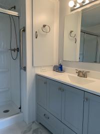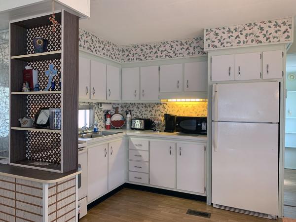 Clean and comfortable, well maintained. Single car carport leads to entrance into screen room with vinyl windows. Front living room opens to kitchen with eat-in dinette. Lots of cabinet storage. Kitchen has electric range, microwave and refrigerator as well as small kitchen appliances. Bathroom recently remodeled with step in shower, shower enclosure glass doors and grab bars for safety. New vanity with single bowl sink and comfort height toilet. Spacious bedroom has new queen bed, large built in dresser unit with dressing table. His and her closets with bypassing doors. Utility building off of carport has washer and dryer. Storage utility building located behind home. Home is all electric with NEW central air conditioning/heat unit (8/2025). Water lines updated to PEX lines. Roof over on home and insulated ceiling in screen room. Reasonable lot rent includes water, sewage, and trash pick up. No Pets Please. Please contact for additional photos.