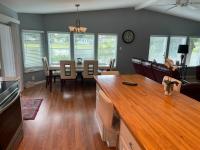 At the heart of the home is the open great room, combining the updated kitchen, dining and family room--all with breathtaking views of the lake. The kitchen features stainless steel appliances, Corian countertops and sink and an oversized butcher block island with seating for four--perfect for entertaining.