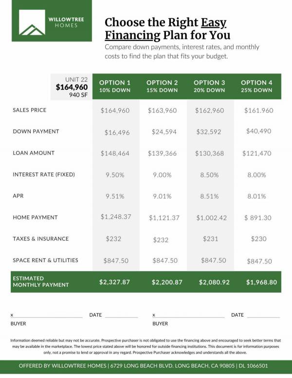 15% Down 9.0% Financing Rate @ 360 months