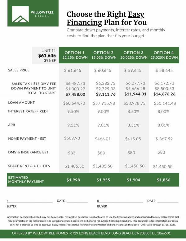 15% Down 9.0% Financing Rate @ 30 Years