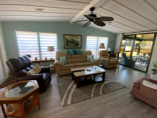 Sliding glass doors to the lanai. The lanai is enclosed and overlooks a great yard that has a wooded area.