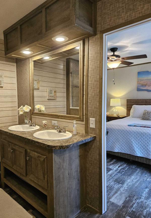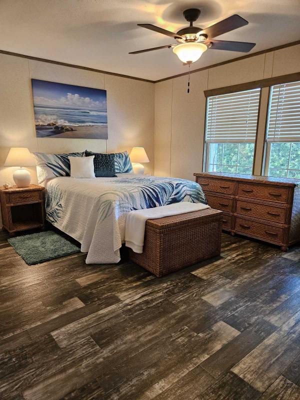 This is an oversized single wide, very well maintained, only 6 years old, 2 bedrooms and 2 full baths, split floor plan, 16ft x 76ft with 1216sf of living space. This home has spacious bedrooms and a huge walk-in shower in the master bedroom with dual sinks and a built-in shelf for your TV. Both bedrooms have walk-in closets. Beautiful flooring throughout for easy clean up and maintenance and double pane windows. New hot water heater installed 2023. House filtration system installed 2023. What sets this home apart is the AC/heat ducts are in the ceiling, not the floor. The average electric bill is $112 per month for the last 12 months!