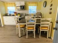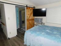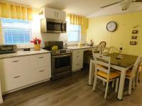 Step into comfort and style with this beautifully maintained 1985 Fleetwood Claremont home, offering a split floor plan with 2 bedrooms, 2 bathrooms, and 840 sq. ft. of living space (60 x 14). From the moment you enter the home from the screen room, you will be welcomed by a bright and modern remodeled, well-equipped kitchen that showcases granite counter tops, stainless steel appliances, and ample cabinet space - perfect for cooking and entertaining. The spacious master bedroom offers two built-ins for storage eliminating the need for extra furniture, and a remodeled private bathroom enhanced by a sliding barn door, step-in shower, rainfall shower head, and fold down seat for a spa-like retreat. This home is packed with thoughtful upgrades: Handicap-accessible handles throughout, upgraded flooring, energy efficient windows, modern lighting fixtures, and a new HVAC installed in 2021. Relax in the comfortable screen room complete with shades and a small refrigerator, making this the ideal place to unwind and enjoy the Florida sunshine. A spacious storage shed includes a large-capacity washer and dryer plus a loft space for additional storage if needed. Best of all, this gem is move-in ready, furnished throughout, and designed with convenience and comfort in mind!