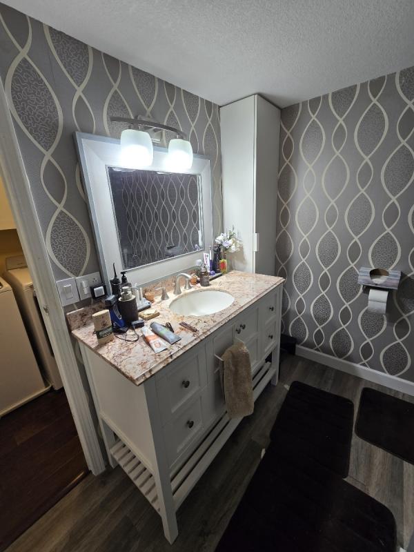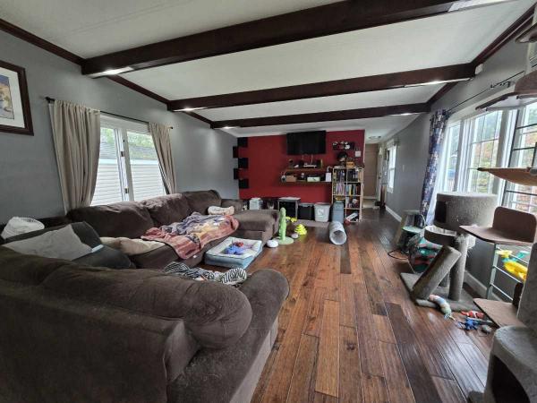 With a new rubber roof, 2 car driveway and 1 car garage, and loaded with updates from top to bottom, this 1980 14x60 2 bedroom 1 bathroom Wick Marshfield manufactured home is ready when you are! The step down front kitchen is wide open with a stove, stainless steel refrigerator, dishwasher, beautiful custom backsplash, pantry, built in desk, and large bow window! The living room is large, has overhead beams with built in lighting and a coat closet. The primary bathroom has been beautifully remodeled and has an absolutely gorgeous double glass door tiled shower! The laundry room is separate, has overhead cabinets, and the washer and dryer are also included! There's plantation blinds, curtains, a new water heater, central air, a large deck, and the security system can stay if you want it to for $50 per month. Move right in! Pets are welcome too!