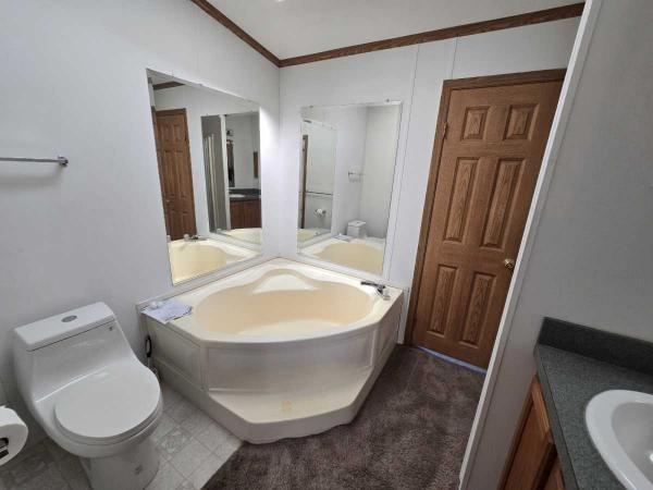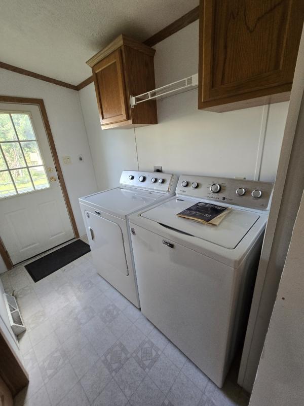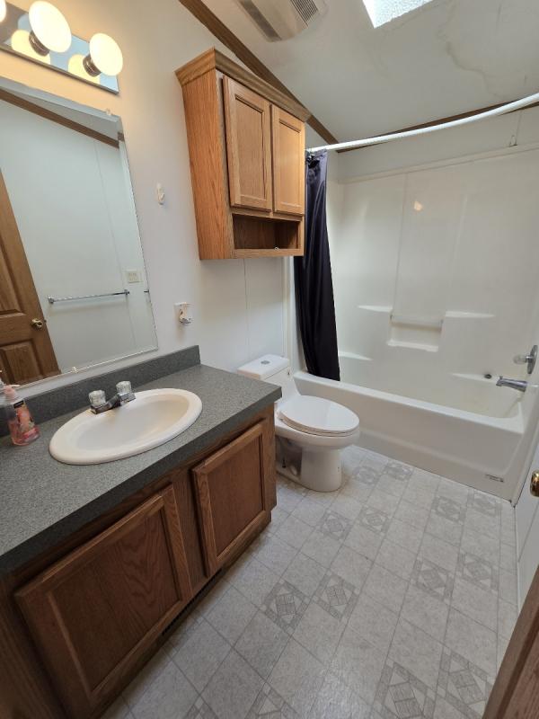 On a treed lot with a 1 car garage and a 2 car driveway, this open concept home is completely loaded! The wrap around kitchen has a stove, side by side refrigerator, dishwasher, microwave, pantry, breakfast bar, buffet area, oak edging, and a window over the sink. There's even a separate dining room with a sliding door leading to the back yard. The living room is large, has a lighted ceiling fan and a coat closet. The primary bedroom is spacious, has a large walk in closet and an attached bathroom with a standing shower, corner soaker bathtub, a medicine cabinet, and a brand new top flushing toilet! The laundry room is separate, has overhead shelving and cupboards, and the washer and dryer are also included. There's cathedral ceilings, central air, lighted ceilings fans throughout, skylights, walk in closets in every bedroom, 6 panel doors, blinds, brand new top flushing toilets in BOTH bathrooms, and a linen cabinet. Move right in! Pets are welcome also!