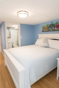 - Split-floor plan with two en-suite bedrooms, each offering built-in closets, dressers, and custom-tile walk-in showers for comfort and privacy.