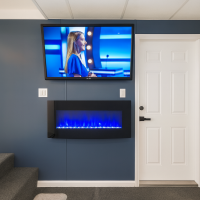 - Two-car covered carport leading to the oversized screened room with three outdoor ceiling fans, built-in electric fireplace, and flat-screen TV-perfect for year-round enjoyment.