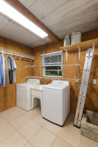 - 10x10 storage shed serving as a dedicated laundry room with ample space for seasonal equipment and supplies.