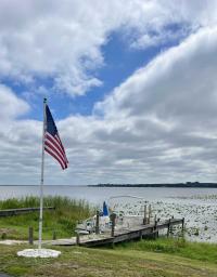 You'll love the spacious bonus room with laundry hookups-perfect for hobbies, storage, or extra lounging-and the comfort of three window A/C units. Step outside to enjoy beautiful lake views from the front yard, with lake access just steps away, plus a canal running behind the home for easy fishing. The home is offered turnkey and includes a golf cart.