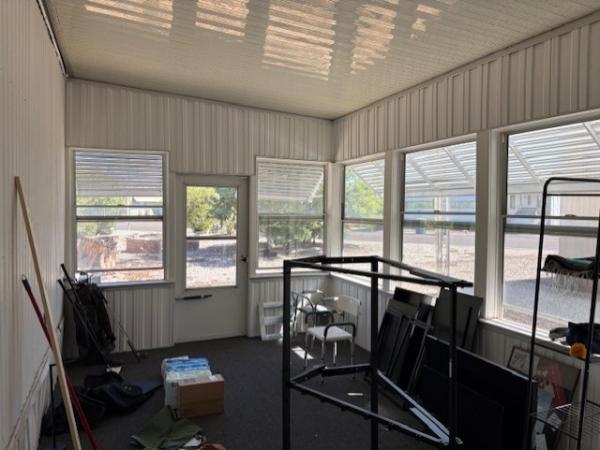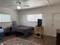 Recently restored approximately 1200 square foot 2-bedroom 2-bath mobile home with front deck entrance, living room, dining area, remodeled step-saver kitchen , guest bedroom with adjacent full bath, primary bedroom suite with vanity - walk-in closet and walk-in shower, washer/dryer hook-ups, back entrance AZ. Room with custom storage shed, covered concrete drive, recent renovations include new central air system, interior painting, laminate flooring throughout, newer kitchen appliances, and home is being sold partially furnished, located close to clubhouse and pool area in 55+ gated community. Call for a viewing ! Note: lot rents are subject to change depending on community current lot rents on date of close.