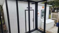 *8x7 screened in Back Porch w/ metal roof & motion sensor LED Lighting.