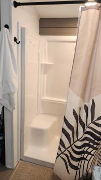 *Completely remodeled Master Bath in 2021 w/ low step walk-in shower with built in seating, new flooring, Shiplap accent walls, new vanity w/ square sink & updated faucet, LED Lighting above vanity & in shower, huge linen closet, & tall toilet.