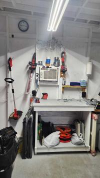 *Custom 15x18 Work Shop / Storage Shed built in 2023. Comes complete with LED Lighting, electrical outlets throughout inside & out, window A/C unit, & has a metal roof. Comes w/ all shelving and 2 work tables.