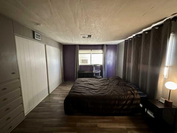 Huge front living room to formal dining area w built in hutch. Den area off back of the living room w slider door to patio area outside. Kitchen has pantry, side by side refrigerator w water and ice, dishwasher and disposal. Energy efficient gas water heater, stove and furnace. No carpet, all wood laminate flooring through out. Main floor bath w standard tub shower combo. Large 2nd Bedroom w wall closet and built in dresser drawers. Huge primary bedroom w wall closet and more built in dresser drawers. Primary bath has linen closet, dual sinks and standard tub shower combo. Two sheds, one w power under the carport.