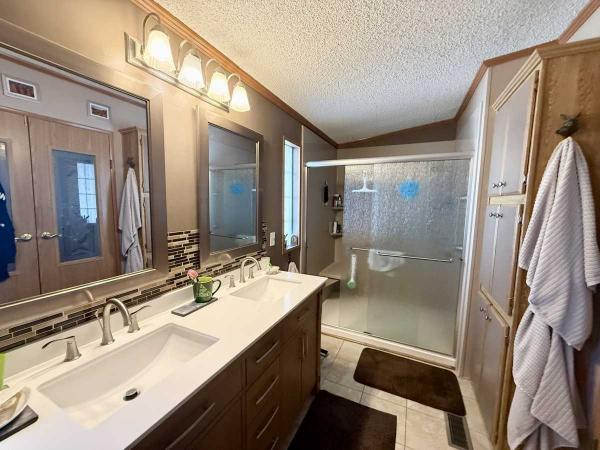 Welcome to this beautifully updated 2-bedroom, 2-bathroom Palm Harbor home with a versatile bonus den, located in a vibrant gated 55+ community in sunny Tucson, AZ. This spacious 28x56 residence offers over 1,500 sq ft of comfortable living and has been thoughtfully maintained with numerous updates, including a gas pack and water heater installed in 2019,new double-pane windows in 2024 and a freshly painted exterior in 2024, and interior paint completed in 2023 (per seller). Step inside to find a carpet-free layout, offering a clean and modern feel throughout. The kitchen is light and bright with a charming bay window over the sink, a built-in dining peninsula, and comes fully equipped with a gas oven/range, dishwasher, garbage disposal, and a sleek stainless steel refrigerator (2021). The adjacent formal dining room also features a bay window, perfect for entertaining. The spacious living room boasts a cathedral ceiling and French doors leading to both a cozy screened-in porch and the bonus den/flex room. The large guest bedroom includes a built-in desk and extra storage, while the primary suite offers a generous closet and an upgraded en-suite bathroom with dual sinks, a linen closet, and a walk-in shower updated in 2023. Outside, enjoy multiple outdoor living spaces including a front covered porch with upgraded decking, a back patio, and a large screened-in porch-ideal for relaxing or entertaining. The covered carport includes a 10x10 shed with a workbench, adding even more functionality to this already impressive home. Don't miss your chance to see this move-in ready gem-schedule your private showing today! Please note: Lot rents are subject to change based on current community rates at time of close.