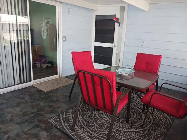 This home is tastefully decorated and sold fully furnished. It has been meticulously maintained by it's previous owners. It has a new roof, new carport, new screened porch, and a new lanai, all replaced in 2025. It has new laminate flooring throughout, and newly updated bathrooms. The kitchen has been updated (2023) and there is a unique separate office space off the informal living area next to the kitchen. There is a x-tra large screen porch under the carport and and a shed with two entrances for laundry and tools. There is a backdoor that opens up directly into a spacious backyard. The shed has the washer, dryer (new) with lots of space for extra supplies and tools. The whole outside has been beautifully landscaped and the home is located just steps away from the clubhouse and pool area. Driveway easily holds two vehicles in tandem.