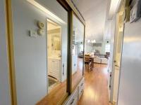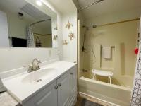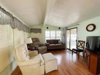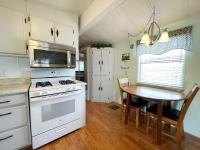 This well kept home provides everything needed to enjoy a park model get-away home. With an open inviting interior this Furnished home offers plenty of space. Step inside through the sliding glass door and head into the front combined living room and eat-in kitchen area. The cozy living room features a 3-panel bay window, loveseat, recliner chair, TV stand with 42" TV. and a chair with matching ottoman. The adjacent eat-in kitchen boasts ample cabinets, full-size appliances, over-the-range microwave, gas range, newer refrigerator, dishes, pots/pans, silverware, table and 3 chairs. In the bedroom you'll find a queen size bed, built-in dresser, shelves, computer desk and linen cabinets, mirrored glass closet doors and a 3-panel dual pane bay window. Bathroom is quite spacious and offers a shower/tub combo, newer vanity, recessed lighting and a cabinet above the comfort height toilet. There are a host of special features and upgrades throughout, all meant to enhance comfort, convenience and efficiency. To list just a few: