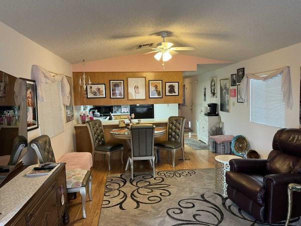 This home is ready to move in, plenty of furniture stays. Gated community with almost unheard of low space rent of $657 in the central Mesa area, minutes away from the 202 highway. The addition has its own private entrance with heating and cooling. French doors and deck on the main entrance. Two sheds that are connected giving you plenty of space for storage. Call and schedule a showing today!