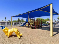 Sun-shaded playground and soccer field