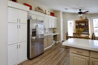Inside, you'll find a spacious eat-in kitchen that opens to the family room, creating an inviting open-concept layout. The kitchen features stainless steel appliances, updated countertops and fixtures, and professionally painted cabinets. Nearly every detail has been refreshed-new luxury vinyl flooring throughout (with newer carpet in the second bedroom), updated trim, appliances, and modern finishes.