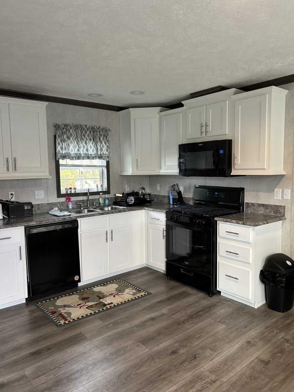 Like new, move in ready, 2024 Eagle River 16' wide 2 bedroom. 2x6 Exterior walls, thermal windows. Spacious open floor plan, 19' living room, with ceiling fan, open to eat in kitchen, abundant counterspace, white flat panel cabinets, Euro handles, appliances include over range microwave, dishwasher, refrigerator with icemaker, gas range, recessed lighting. Large owner bedroom, ceiling fan, large closet, owner bath with walk in shower, transom window. Main bath with tub/shower, transom window, wall towel cabinet. Front bedroom, ceiling fan, door to 6' front porch. Hall laundry area. Both exterior doors have storm doors. Interior whole house water shut off. Furnishings, washer and dryer are negotiable. Carport, 8x10 storage shed, concrete drive, walkway to front porch, vinyl skirting, pex plumbing, located on wooded lot in well maintained community. Star tax credit eligible.