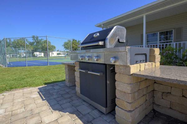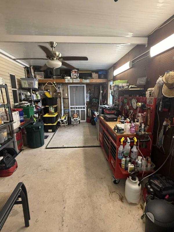 This home has it ALL! The first thing you notice when you enter this furnished home is the beautiful, remodeled kitchen with stainless steel appliances, granite counter tops and the beautiful waterproof LVT flooring throughout the home. The interior has been painted, Thermopane windows installed with shutters, insulated rubber roof with a transferable lifetime warranty, new water heater and the air conditioner still has a 3 year warranty. The A/C duct work was replaced in 2018. This home features a lovely all-season lanai that has new windows (2023), roll up blinds, insulated roof and a mini split air conditioner / heater. The large master bedroom features an en-suite bathroom. The guest room has a murphy bed and the guest bathroom has been completely remodeled. The outside of the home has also been upgraded with a beautifully landscaped yard, and cobblestone painted driveway. The oversized shed is any mans dream. This work shed has been completely insulated and has a window air conditioner for comfort all year. The double doors would allow you to park a golf cart inside the shed. All of this and more for only $136,500!!