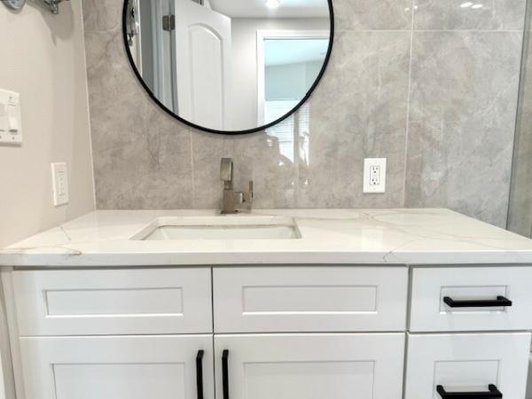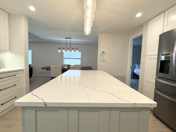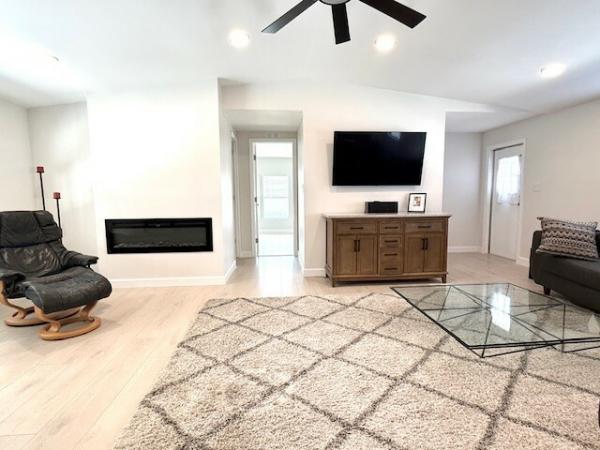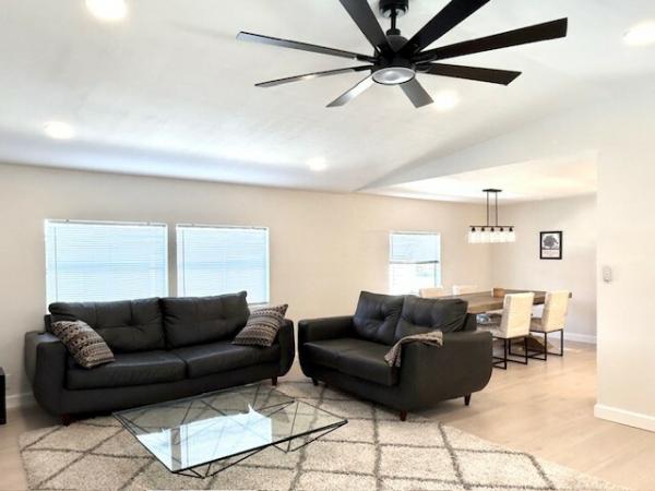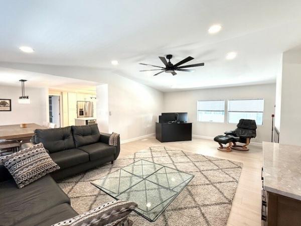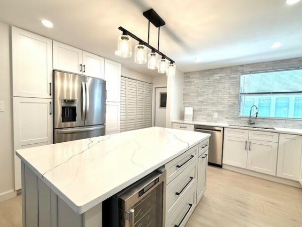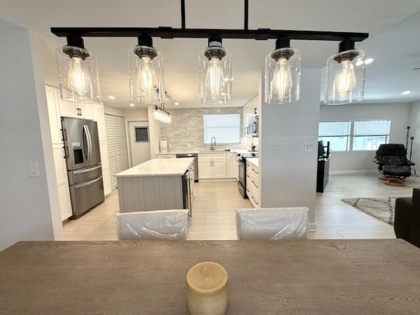 WOW!! WOW!!WOW!! 1440sqft of transformed space! Full interior remodel 2/2 split floorplan w/modern upgrades & premium finishes! 50-year warranty subfloor, waterproof laminate flooring throughout, new drywall w/fresh, neutral paint colors. Vaulted Ceilings w/recessed lighting create a dramatic effect! The Living Room features a built in functional electric Fireplace that adds warmth & ambiance! Chef's kitchen w/custom solid wood self-closing doors & drawers. A Center Island is the anchor of this room which also features a large built in pantry w/drawers/pullouts. Finishes include beautiful quartz countertops & stainless appliances. Another bonus feature is the Laundry Closet w/Washer/Dryer that is located inside the home! Both bathrooms have been redesigned & include abundant storage. The guest bath features a large soaking tub w/beautiful porcelain tile surround & glass doors. The primary bath features a sleek walk-in shower & large dressing area. The seller even added a towel warmer for spa-like comfort! Each bedroom is extraordinarily large w/recessed lighting & walk in closet. The primary bedroom features a large secondary closet. Outdoor spaces include a 240sqft screened lanai as well as a deep carport large enough for 2 full sized vehicles. Additional features include HVAC (2024), 15-year roof coating (2025), PEX Water Supply lines (2024), LED Recessed Lighting Throughout (2024), Drywall & Interior Doors (2024) The home was professionally re-leveled & includes 19 new pilings. Lincolnshire is an age restricted community which offers premium amenities including a newly renovated clubhouse & state of the art gym, shuffleboard & beautiful, heated pool. All potential residents must apply for residency and are subject to community approval.