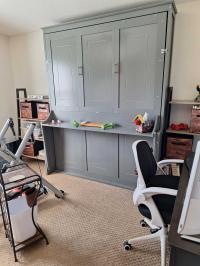 Queen size Murphy bed and hanging 32" TV in guest room