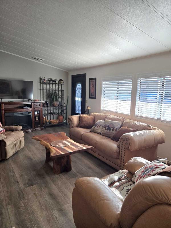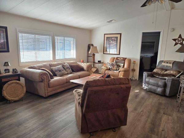 BEAUTIFULLY REMODELED 2 BED 2 BATH HOME IN A CO-OP 55+ COMMUNITY. YOU WILL LOVE THE GORGEOUS UPDATES. NEW ROOF 2024, SLEEK COUNTER TOPS, AMAZING CUSTOM DOORS THAT ARE HIGH QUALITY AND STUNNING. VAULTED CEILINGS WITH CEILING FANS. DINING ROOM HAS BUILT IN HUTCH. KITCHEN HAS A SIT AT COUNTER FOR BAR STOOLS. PERFECT NATURAL LIGHTING FILLS THE SPACIOUS OPEN FLOOR PLAN LIVING AREA. THE NEW LIGHTING GIVES IT A WARM COZY FEELING.NEWER LAMINATE FLOORING THROUGH OUT MODEREN AND STYLISH. TASTEFULLY DONE NEUTRAL NEW PAINT INSIDE AND OUT. THE FRONT OF THE HOME HAS LOVELY SLATE BRICK AND NEW PAVERS MAKING IT EVEN MORE CHARMING WITH A CLEAN NEAT LOOK.MAIN BEDROOM HAS DUAL SINKS IN BATHROOM AND WALK IN CLOSET. LAUNDRY ROOM HAS FULL SIZE WASHER / DRYER. SHED FOR EXTRA STORAGE UNDER CARPORT. THIS IS A PERFECT RETIREMENT HOME OR SNOWBIRD HOME SUPER AFFORABLE. ENRICH YOUR LIFE IN THIS COMMUNITY WITH POOL, SPA FUN GET TOGETHERS AT THE CLUB HOUSE. EASY ACCESS TO SHOPPING, DINING, GOLFING AND MORE.CALL ELISE TODAY TO MAKE IT YOURS!!